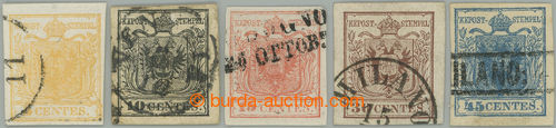 Philately. Ferch.1-5, Coat of arms 5Cts-45Cts, 10Cts type III., 15Cts Seidenpapier, 30Cts Erstruck, 45Cts U. Mitte type I and PF 11 (deflected lower frame); c.v.. $630 (Image) (Image2)