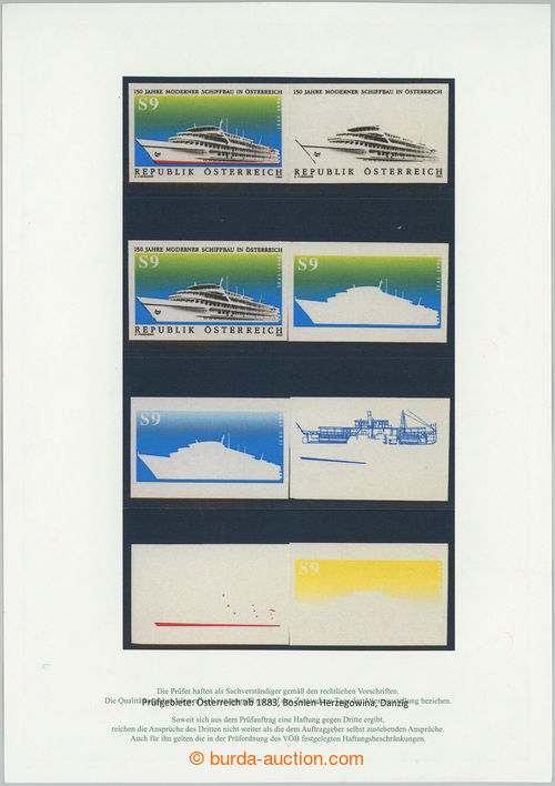 Philately. ANK.2031 PhU, Steamship 9Sch, 8x imperforated stamp, phase prints; certificate Soecknick, scarce set (Image) (Image2)