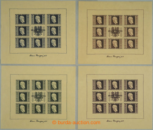 Philately. ANK.780-783A, souvenir sheets Renner 1Sch - 5Sch; mint never hinged, 2Sch minor gum fault, overall very fine, c.v.. 2.500EUR