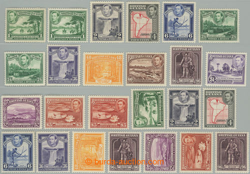 Philately. SG.308-319, George VI. - Motives 1c - $3; almost complete set with shades and variants of perf incl. 319 (missing only 317a), total of 25 stamps; very fine, c.v.. £320, rare set (Image) (Image2)