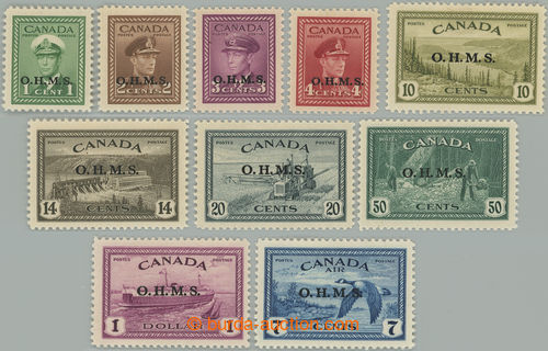 Philately. SG.O162-O171, Official George VI. - Motives 1C-$1 + official airmail 7c with overprint O.H.M.S.; complete set, mainly hinged, c.v.. £275