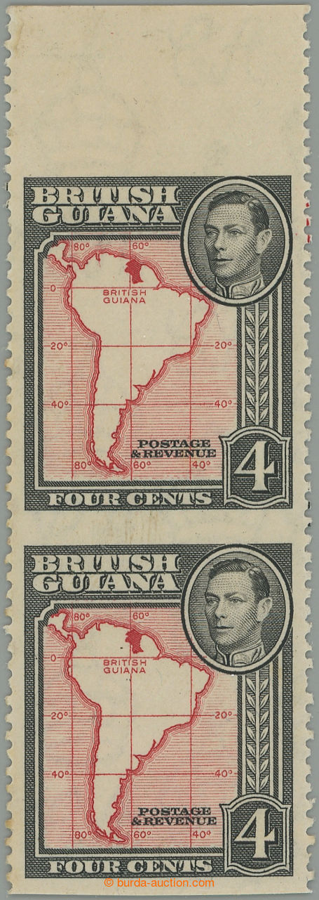 Philately. SG.310a, marginal vertical pair George VI. 4c Map, OMITTED HORIZONTAL PERFORATION; fine, some toning and short perf, lightly hinged only at upper margin, c.v.. £40.000, scarce! (Image) (Image2)