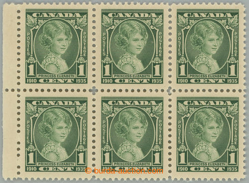Philately. SG.335, 335a, Silver Jubillee, whole page from booklet 6x 1C Elizabeth, on pos. 1 favourite plate variety WEEPING PRINCESS; c.v.. £160++
