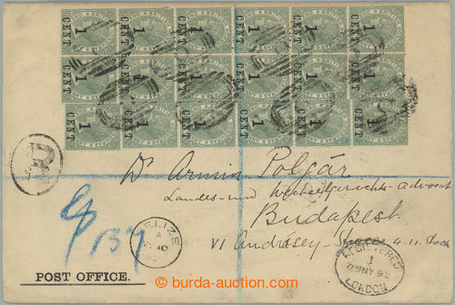 Philately. 2x heavier Reg letter from BELIZE to Budapest (Hungary) with exact franking of 18x overprint 1C/1P SG.36 (12C letter + 6C fee for Reg); very rare franking, unusual destination! (Image) (Image2)