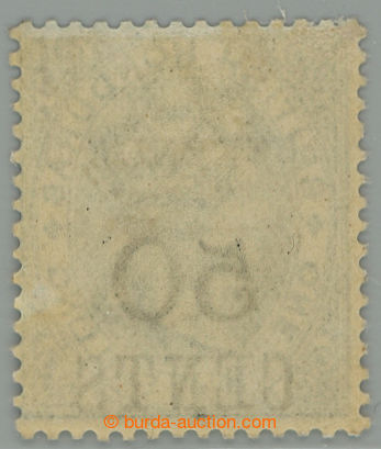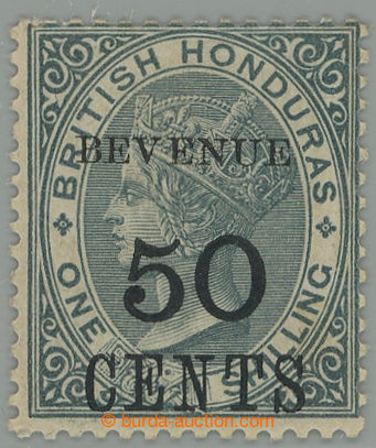 Philately. SG.69a, Victoria 50C/1Sh with printing error of overprint BEVENUE instead REVENUE; at right margin cleaned spot, fine and rare stamp, c.v. £5.000 (Image) (Image2)