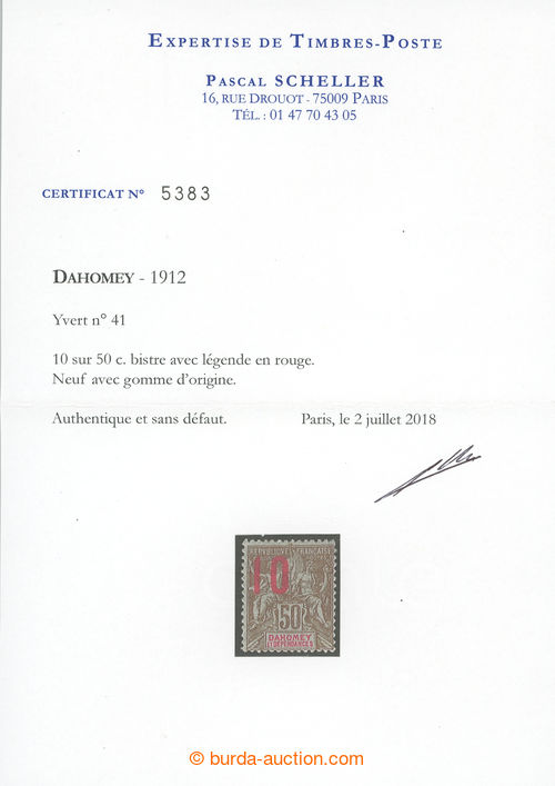 Philately. Yv.19, overprint Allegory 75C rose, overprint OBOCK; fine piece, exp. Scheller, c.v.. 450EUR (Image) (Image2)