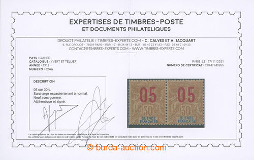 Philately. Yv.5c, overprint Napoleon III. 5C R/30C brown, overprint 5C INVERTED; small thin place, exp. Calves and Scheller, very rare stamp, printing only 25 pcs, c.v.. 5.000EUR (Image) (Image2)