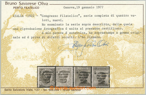 Philately. Sass.123-126, Congresso Filatelico 10C-40C; very fine and rare set with certificate Oliva; c.v.. 4500EUR (Image) (Image2)