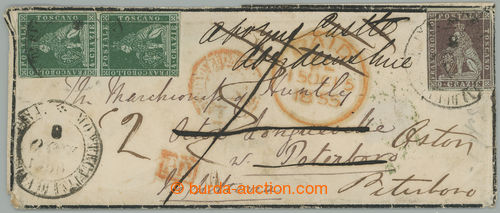 Philately. letter to England, with Sass.6(2x)+8; pair Lion 4Cr + value 9Cr, mourning envelope to PATERBORO, redirected to Aboyne Castle in Aberdeenshire, cancel. ABOYNE OC18 /55 and back; fine, c.v.. 7.250EUR++ (Image) (Image2)
