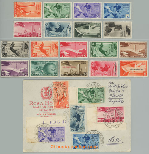 Philately. Sass.357-360, A69-A72 + colonial issue A31-A37 + Aegean islands A34-A36; hinged, minor faults, c.v.. 839EUR + letter to Czechoslovakia franked with 6 values from issue Football; interesting (Image) (Image2)