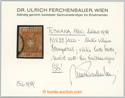 Philately. GOVERNO PROVVISORIO / Sass.22, Coat of arms 80C brown; usual margins, minor faults, certificate Ferchenbauer, c.v.. 2.500EUR