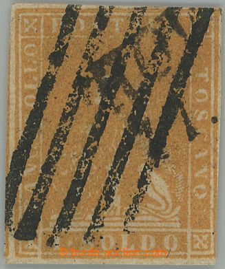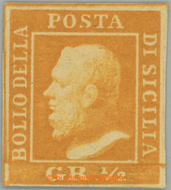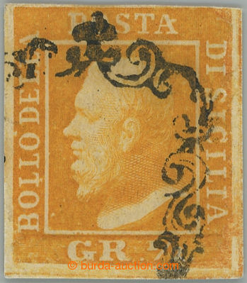 Philately. Sass.1a, Ferdinand II. ½Gr arancio ; very fine example with typical cancel., signed Senf, c.v.. 1.900EUR (Image) (Image2)