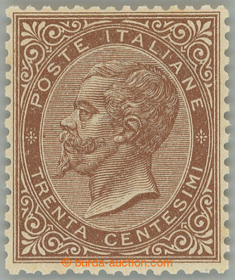 Philately. Sass.L19, Victor Emmanuel II. 30c brown, print De La Rue; fine piece ottima centratura... gomma integra with certificate Biondi, c.v.. 55.000EUR, rare stamp (Image) (Image2)