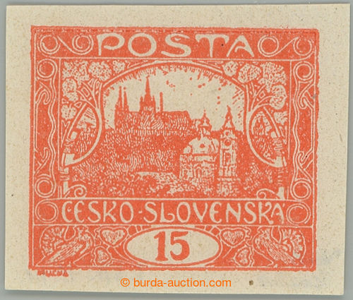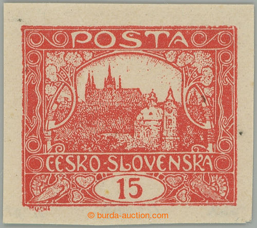 Philately. Pof.7b IIs/IIp, 15h red, PRICKOVY type, pos. 5/1; lightly hinged, certificate and exp. Vrba, small zrnka in paper, overall very fine example, rare and rarely occurring bar type on/for red patnactce! (Image) (Image2)