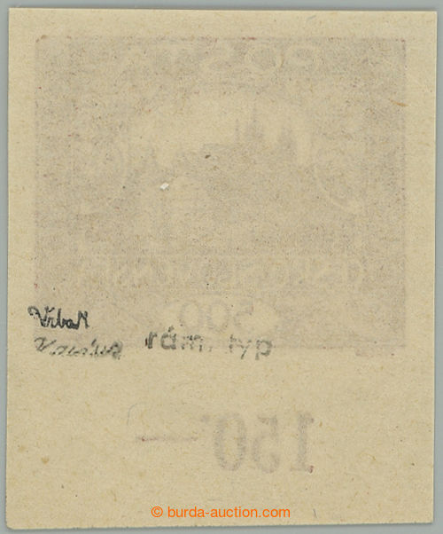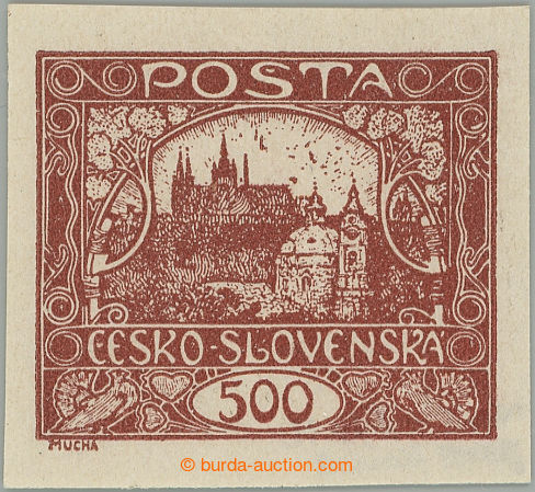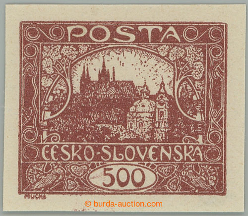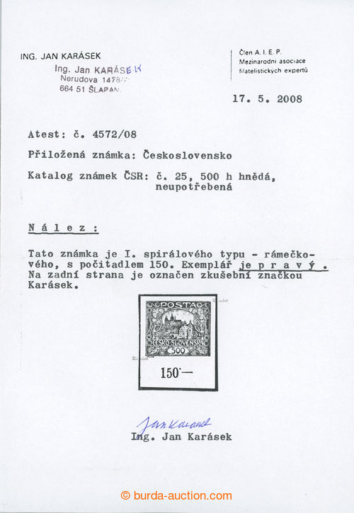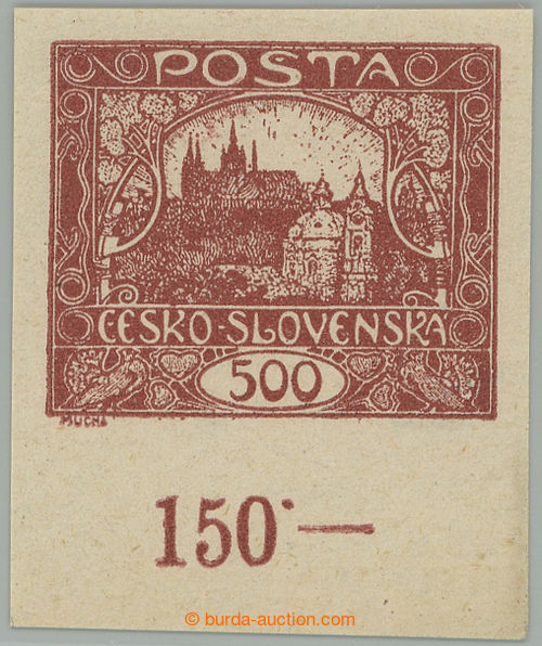 Philately. Pof.25 IIr, 500h brown with lower margin with control-numbers, RAMECKOVY type, pos. 93/1; mint never hinged, certificate Karasek, expertized Vrba, very fine example (Image) (Image2)