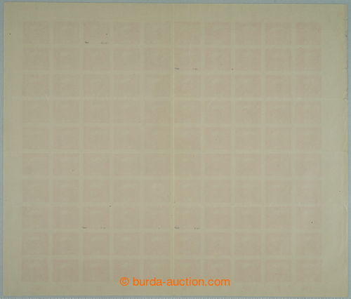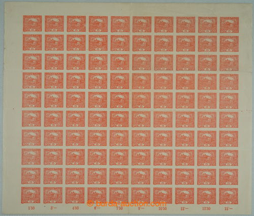 Philately. COUNTER SHEET / Pof.7 STs+p, 15h bricky red, complete 100 stamps sheet, plate 2, 1x spiral types combination, Is on pos. 15 and 3x bar types combination, IIp on pos. 8, 75, 78; mint never hinged, 1x vertical and 3x