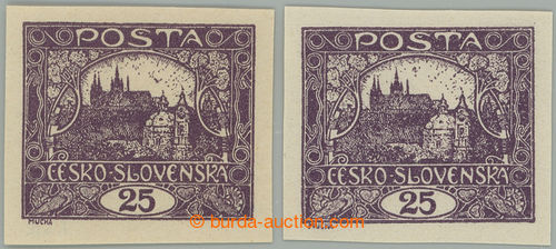 Philately. Pof.11 Is + 11 IIp, 25h violet, 2 pcs of - SPIRALOVY and PRICKOVY type; both lightly hinged, 1x exp. Vrba (Image) (Image2)