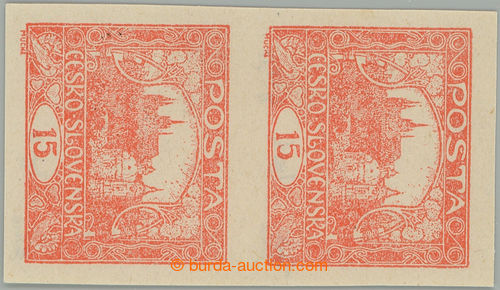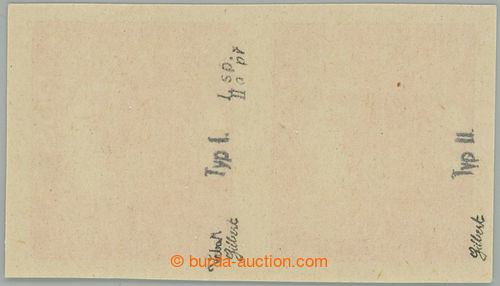 Philately. Pof.7 STk, 15h bricky red, vertical pair, pos. 23 and 33/1, spiral types combination and bars, combination spiral type I and bar subtype IIa on pos. 23/1; lightly hinged on/for upper stamp., exp. by Gilbert and Vrba (Image) (Image2)