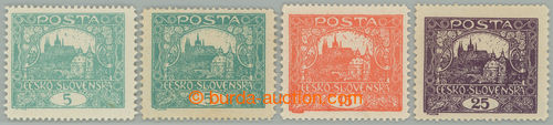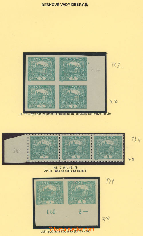 Philately. Pof.4F, 7F, 11F, line 4 pcs of stamp. with line perforation 13¾ : 11½, 5h blue-green 2 pcs of in various shades; all mint never hinged, values 15h and 25h exp. Vrba (Image) (Image2)