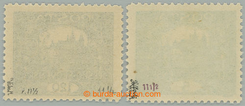 Philately. Pof.4D, 21D, 5h blue-green and 120h grey with line perforation 11½; only 5h light hinged and 2x grain in paper, 120h mint never hinged, exp. Vrba, Gilbert (Image) (Image2)