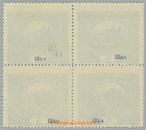 Philately. Pof.4B, 5h blue-green, comb perforation 11¾, LR corner blk-of-4 with control-numbers and plate number III; label in UR corner, minor gum fault, exp. Vrba (Image) (Image2)