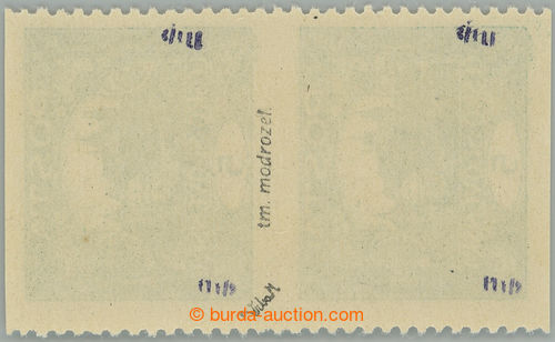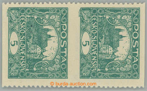 Philately. Pof.4Da production flaw, 5h dark blue-green, vertical pair with omitted horiz. perforacemi, vertical line perforation 11½; mint never hinged, exp. Vrba (Image) (Image2)