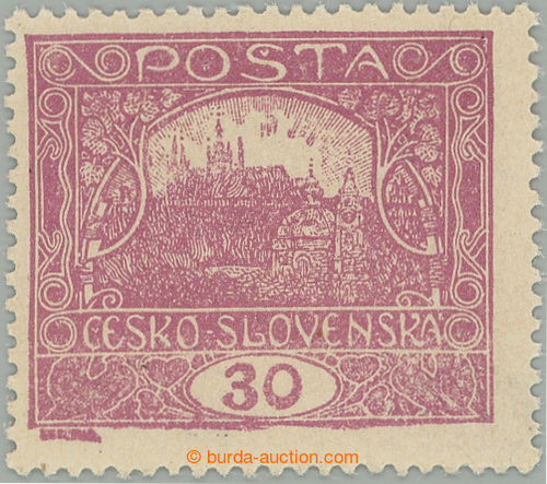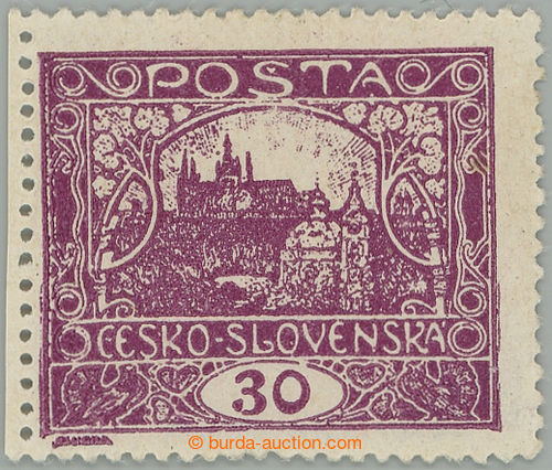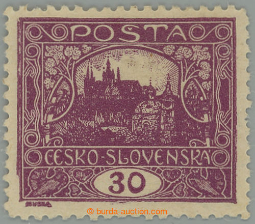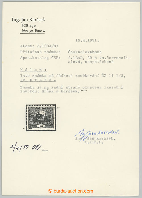 Philately. Pof.13C, 30h light violet with very rare radkovou perf 13¾; lightly hinged, lower sporadically short teeth and minor faults, light fold in paper, Vrba certificate, expertized Karasek, catalogue for * 145.000Kc, extremely