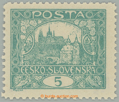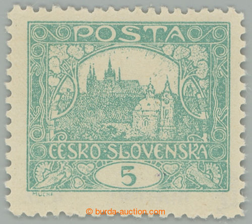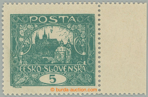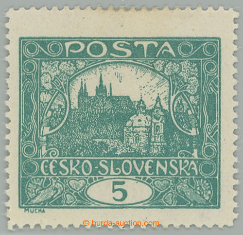 Philately. Pof.4Ca IIap, 5h dark blue-green with R margin, line perforation 13¾, PRICKOVY subtype, pos. 10, plate 4; mint never hinged, exp. Vrba, Karasek, fine piece (Image) (Image2)