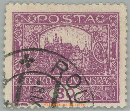 Philately. Pof.13D, 30h light violet with line perforation 11½ and with part of CDS ROUDNICE; quite small thin place in paper at top; expertized Gilbert, Karasek and Vrba, overall fine piece (Image) (Image2)