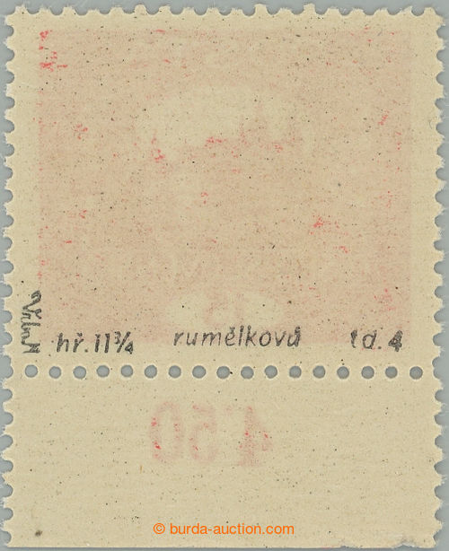 Philately. Pof.7Ad, 15h vermilion with lower margin and control-numbers, comb perforation 13¾ : 13½, plate 4; luxury piece, exp. Vrba