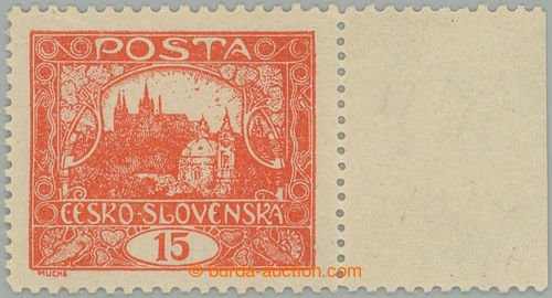 Philately. Pof.7G, 15h bricky red with line perforation 11½ : 13¾ with R margin; lightly hinged, exp. Vrba, bright colour, exp. by Mahr and Vrba