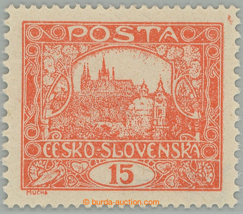 Philately. Pof.7Bd, 15h vermilion with comb perforation 11¾, plate 4; mint never hinged, exp. Vrba (Image) (Image2)