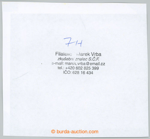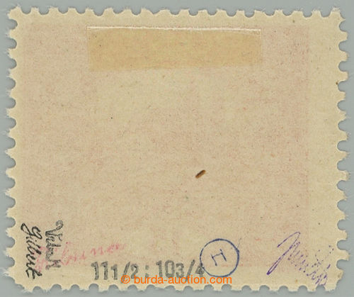 Philately. Pof.7E, 15h bricky red, line perforation 11½ : 10¾; label, exp. by Gilbert., Mrnak, Tri and Vrba (Image) (Image2)