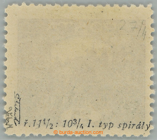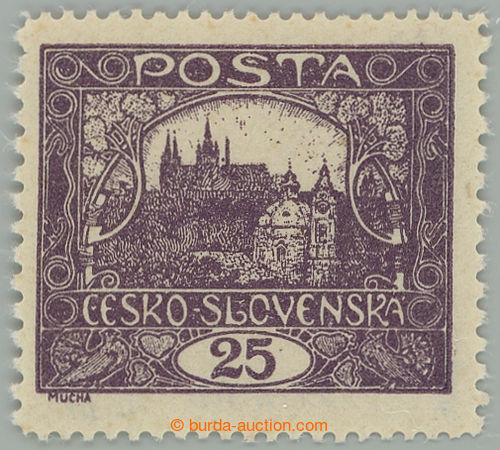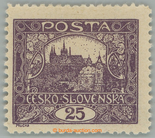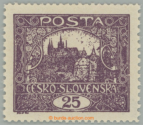 Philately. Pof.11F Is, 25h violet, line perforation 13¾ : 11½, spiral type, pos. 13/1; mint never hinged, expert Benes and Vrba (Image)