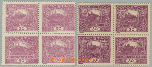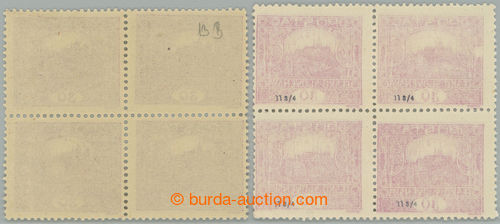 Philately. Pof.13B + Pof.13Ba, 30h light violet + 30h dark violet, both as blk-of-4, comb perforation 11¾, light with full offset; only dark hinged, light mint never hinged (Image) (Image2)