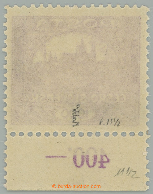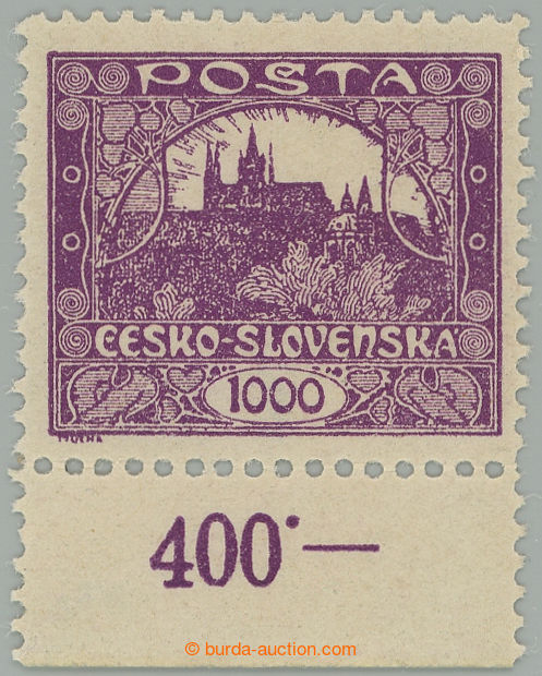 Philately. Pof.26D, 1000h violet with lower margin with control-numbers, special perforation line perforation 11½; lightly hinged, exp. Vrba