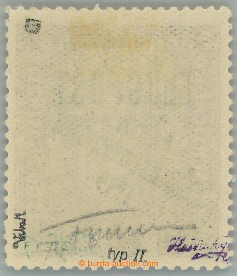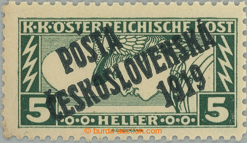 Philately. Pof.58Ba, Rectangle 5h green, ZELENOCERNY overprint II. type, rarer perf line perforation 11½; lightly hinged, exp. Vrba, specialist sought stamp! (Image) (Image2)