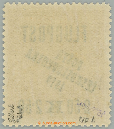 Philately. Pof.49bII Pp, Coat of arms 3 Koruna light red, granite paper, inverted fine centered overprint I. type; mint never hinged, exp. by Mrnak and Vrba (Image) (Image2)