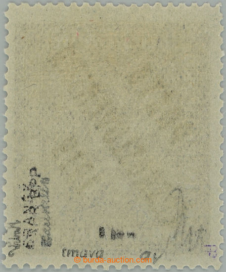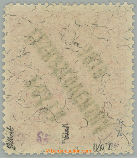 Philately. Pof.49b Pp, Coat of arms 3 Koruna red, granite paper, inverted overprint, type I.; lightly hinged, faded color, exp. by Gilbert and Vrba