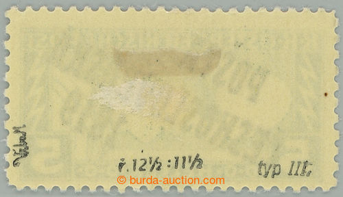 Philately. Pof.58D, Rectangle 5h green, line perforation 12½ : 11½, overprint type III.; hinged, certificate and exp. Vrba, fine piece, rare stamp