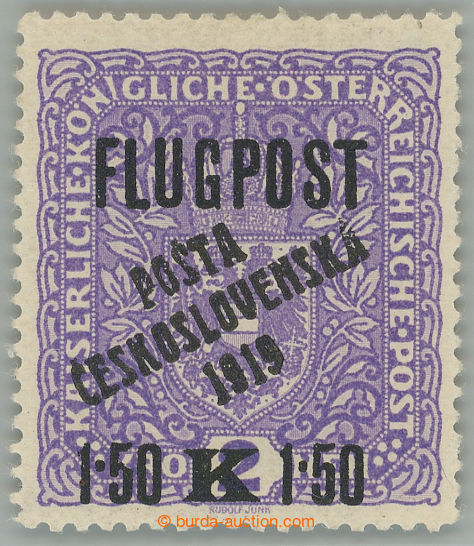 Philately. Pof.52II, Air FLUGPOST 1.50K/2K violet, overprint type II.; hinged, exp. by Leseticky., Brunner and Vrba (Image) (Image2)
