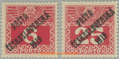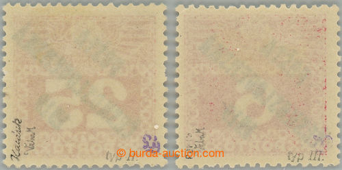 Philately. Pof.67, 69, Large numerals 6h and 25h red, III. resp. overprint type II.; hinged, exp. by Karasek., Leseticky, Pofis and Vrba