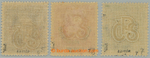 Philately. Pof.183-184, 186, Festival 50h with P7, 100h with P7, 300h with P5, all cardboard paper; only 100h with label, other mint never hinged, exp. Vrba, c.v.. 1.920Kc (Image) (Image2)