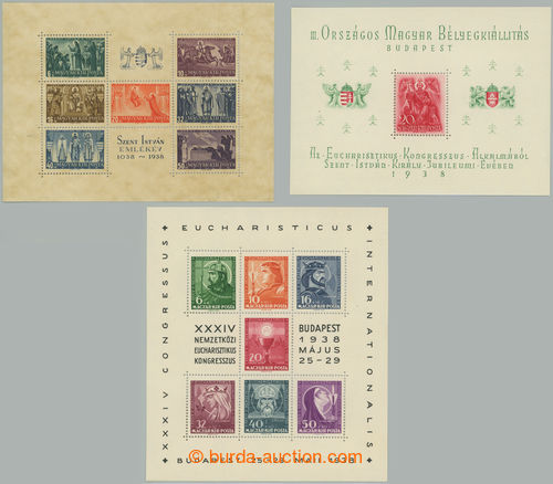 Philately. Mi.Bl.20-22, souvenir sheets 80 years of Hungarian stamps, complete set of 3 miniature sheets; mint never hinged, c.v.. 180EUR