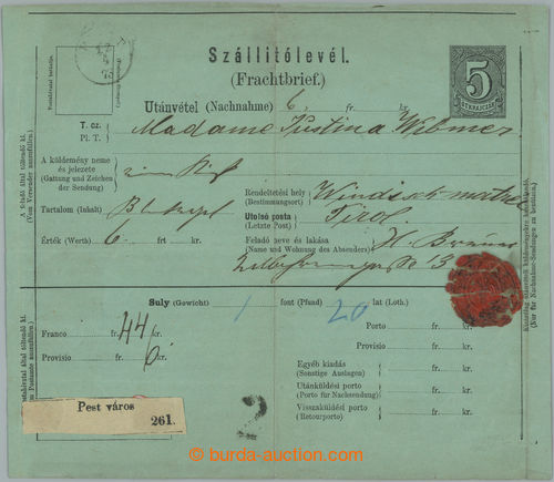 Philately. FREIGHT LETTER FOR RAILROAD / used blank form with imprinted stamp 5 Kr in black color, CDS PEST 12/4 73; fold (Image) (Image2)
