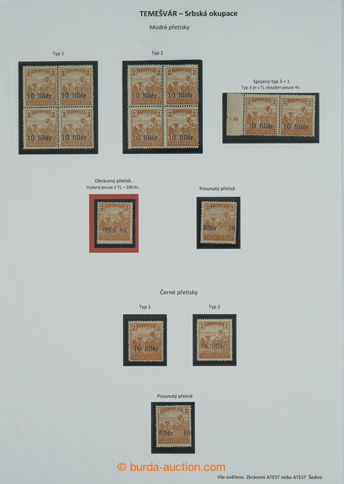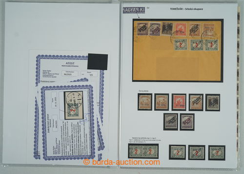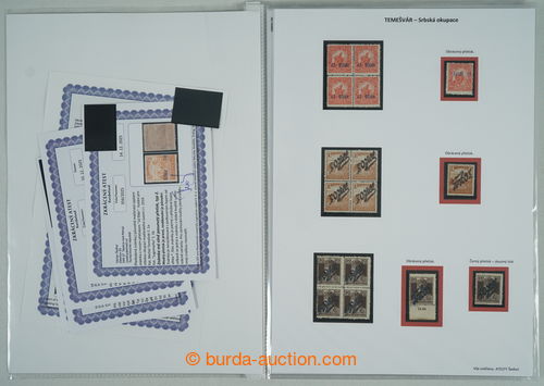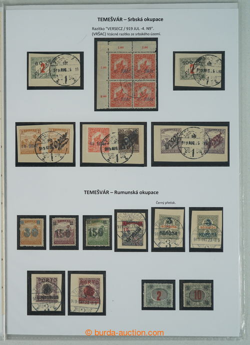 Philately. [COLLECTIONS] TEMESVAR - SERBIAN AND ROMANIAN OCCUPATION / specialized collection, contains almost all known rarities of this issue, parts of sheets, cut-squares, 2x entire, on 8 pages A4 with descriptions, supplemented