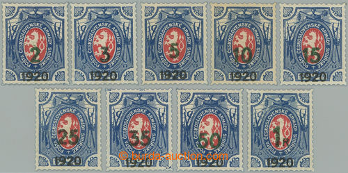 Philately. Pof.PP6-PP15, Charitable stamps - lion, 1Rbl with black additional-printing 1920 and green value 2k/1R - 1R/1R, all type II.; mint never hinged, exp. by Gilbert and Vrba, very sought! (Image) (Image2)