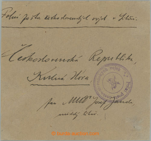 Philately. letter sent from Vladivostok to Czechoslovakia, on reverse mounted stamp. FP 50k and 25k, Pof.PP3, PP2, cancelled violet round cancel. FIELD POST CESKO-SLOVENSKYCH VOJSK with flashes also on face-side, sender member 4.