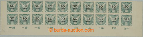 Philately. Pof.SO28, Newspaper stamps - Falcon in Flight (issue) 2h green, lower bnd-of-20 with control-numbers, overprint defects, over-printing plate A/2; in LR corner thin place (Image) (Image2)