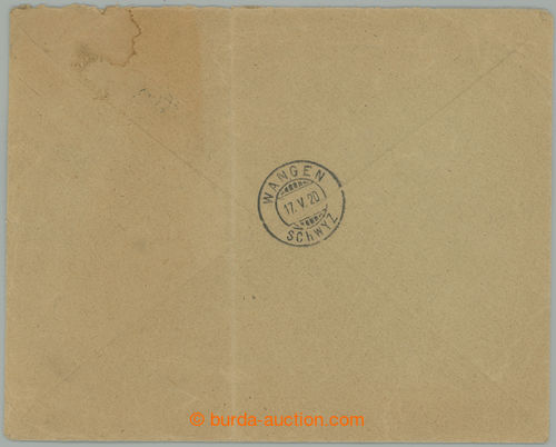 reverse arrival postmark WANGEN 17.V.20; vertical fold between stamp., good condition, extraordinary and rare entire! (Image) (Image2)